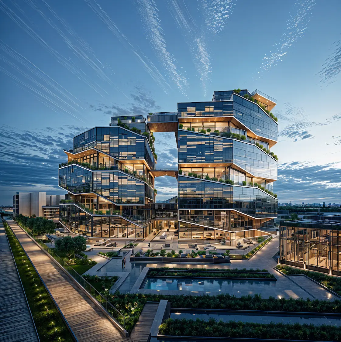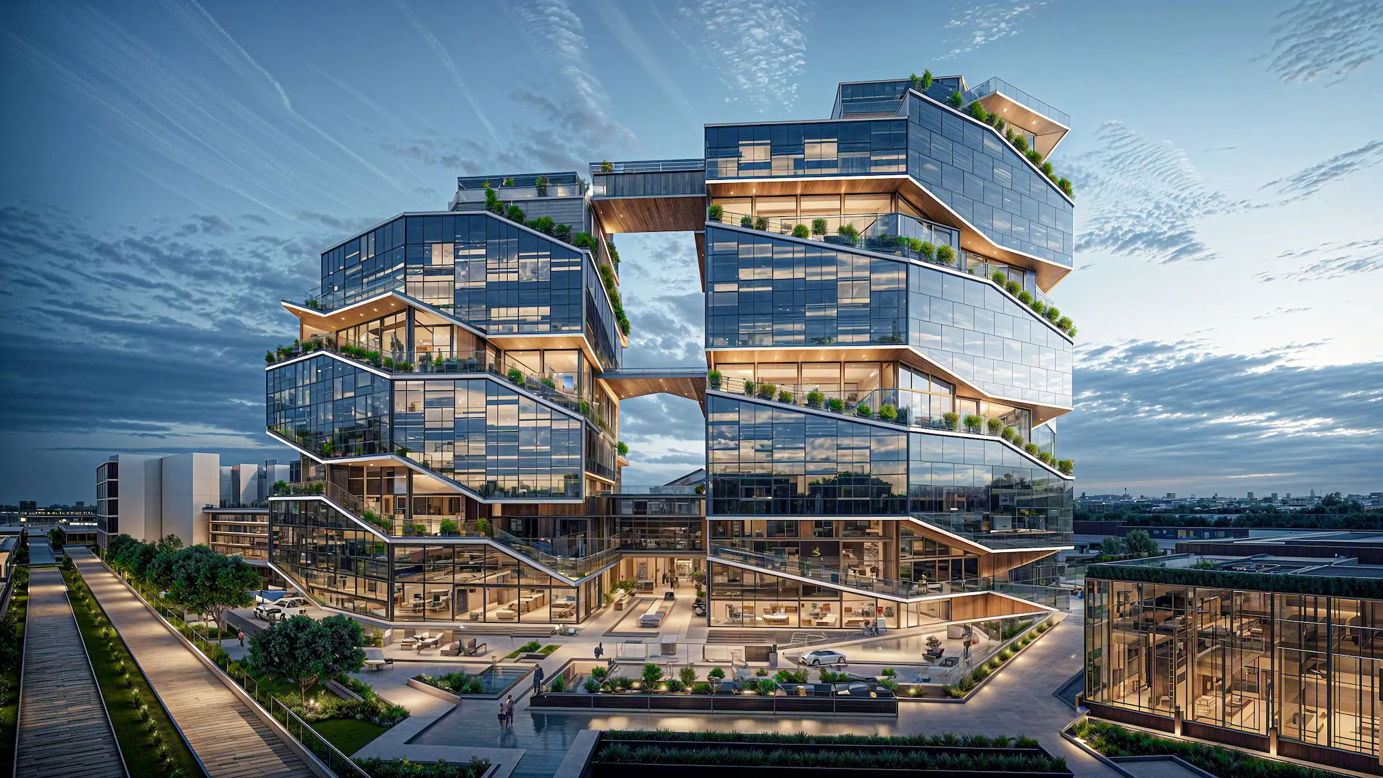 Sustainability is integral to the vision. The architecture incorporates green terraces, vertical gardens, energy-efficient facades, and climate-responsive planning strategies that enhance natural light, ventilation, and thermal comfort. These elements not only reduce environmental impact but also create healthier and more productive workplaces.